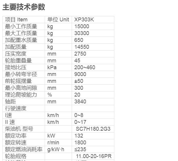 XP303K型輪胎壓路機(jī)是根據(jù)市場要求而產(chǎn)生的大噸位輪胎壓路機(jī),它以充氣輪胎為工作裝置對(duì)輔層材料施以壓實(shí),主要適用于瀝青路面、基礎(chǔ)層、次基礎(chǔ)層、大壩及填方工程等得壓實(shí)作業(yè),是建設(shè)高等級(jí)公路、機(jī)場、港口、堤壩及工業(yè)建筑工地的理想壓實(shí)設(shè)備。